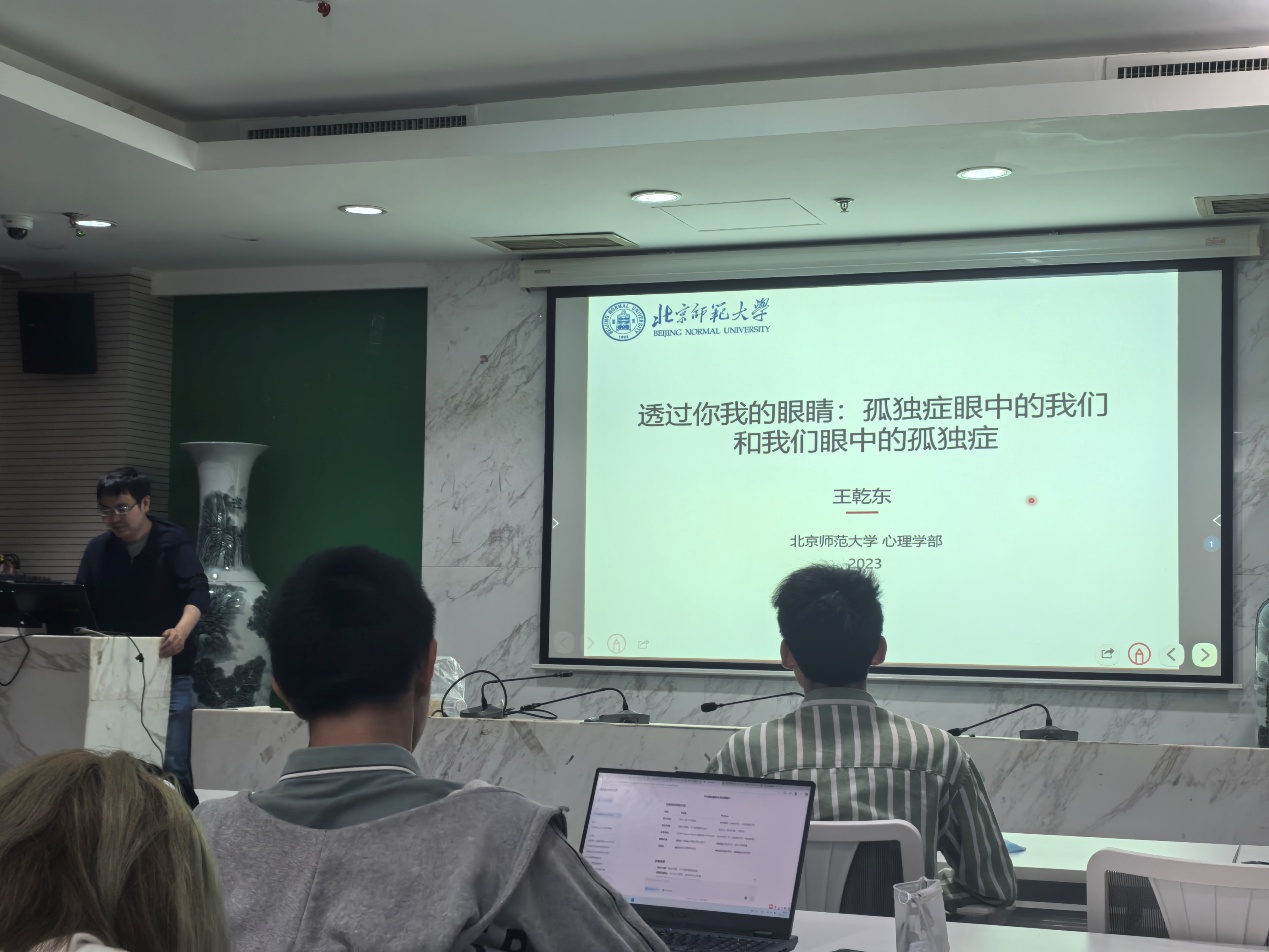 王乾东老师从个人科研经历出发,讲述了自己与心理学的“双向奔赴”。本科期间,他因一次课题研究接触神经网络模型,由此开启自学编程之路,并深刻体会到“以问题驱动学习”的高效性。他鼓励同学们主动担任本科生科研项目主持人,在实践中提升能力:“认真完成一项本基课题,收获的不仅是成果,更是科研思维的蜕变。” 王老师特别强调编程能力对心理学研究的重要性,并以自身为例:因痴迷游戏而自学Python,意外掌握眼动追踪数据分析的核心技能。他还分享了“学霸式浪漫”——与爱人在科研合作中相识相知的故事,引得现场笑声连连。谈及研究方向选择,他建议同学们平衡个人兴趣与导师课题方向,例如其结合自身“面孔加工”兴趣与导师“记忆研究”背景的探索经历。最后,王老师简要介绍了当前针对孤独症儿童的研究成果,包括眼神回避的机制解析、社会视觉同步性干预方案等,为同学们打开了心理学研究的新视野。
