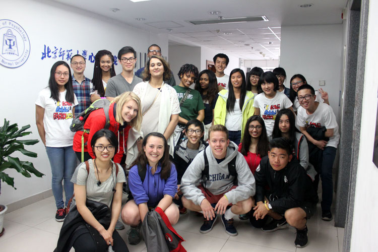 2016年5月14日上午,由2015级八名同学组成的心理学院英文讲解队在后主楼13至15层向密歇根大学的老师和学生们进行了详细而流利的讲解,内容包括心理学院的历史,各实验室,墙壁上展示的人物风采等等。