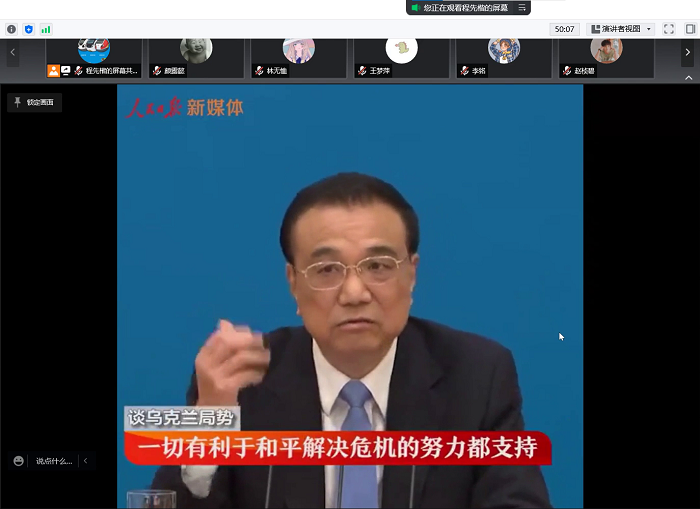 之后,程先楷同志组织大家观看两会有关新闻,包括央视记者关于全国政协十三届五次会议开幕式的报道和十三届全国人大五次会议第二次全体会议。
