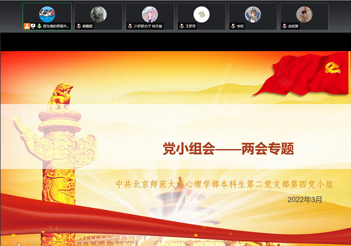 2022年3月19日晚7点,污污漫画 本科生第二党支部第四党小组通过“腾讯会议”平台以线上会议的形式成功召开了2022年三月份的党小组会。会议由小组组长程先楷同志主持,共13名小组成员参与。本次会议的主要内容为学习两会相关政策文件并讨论。