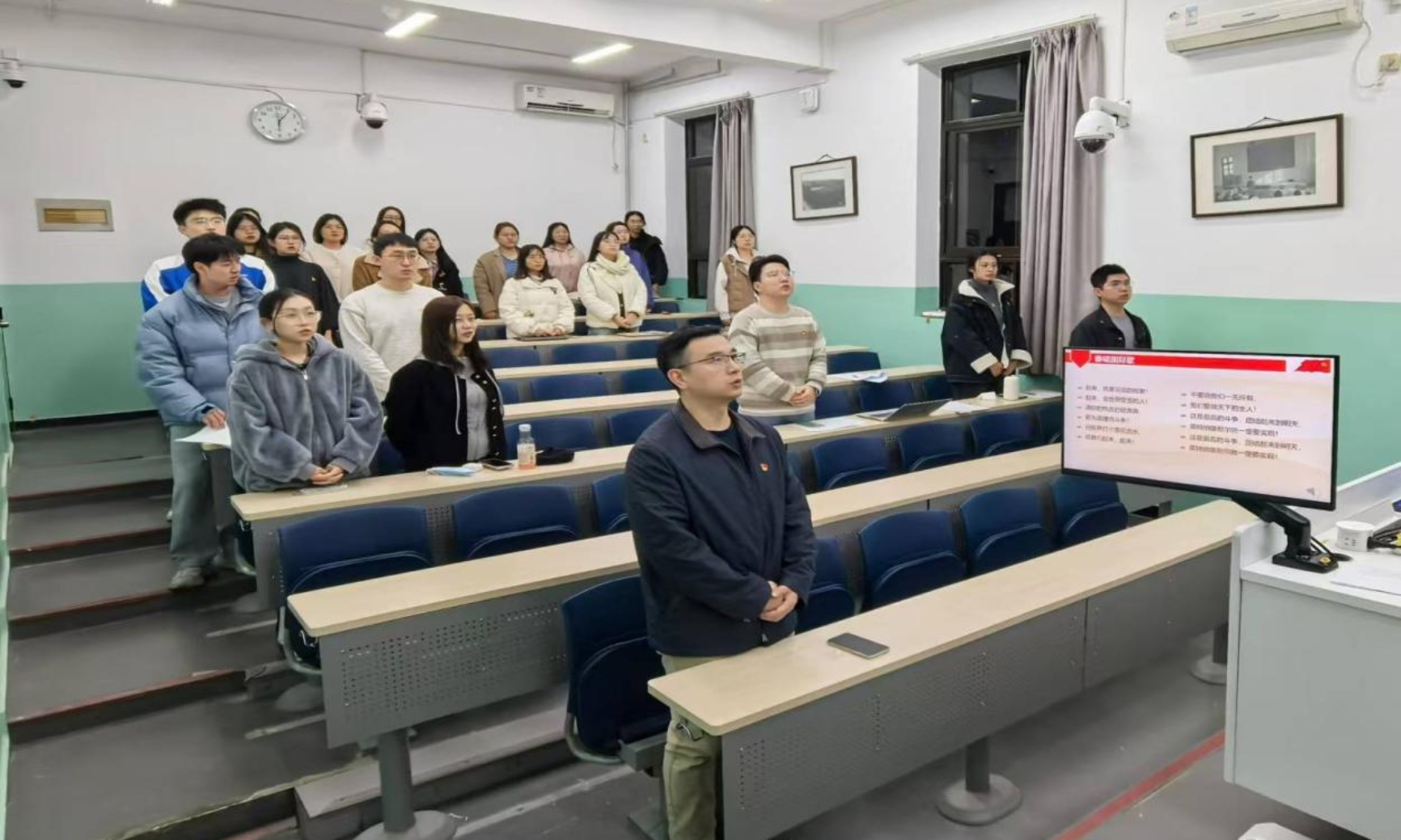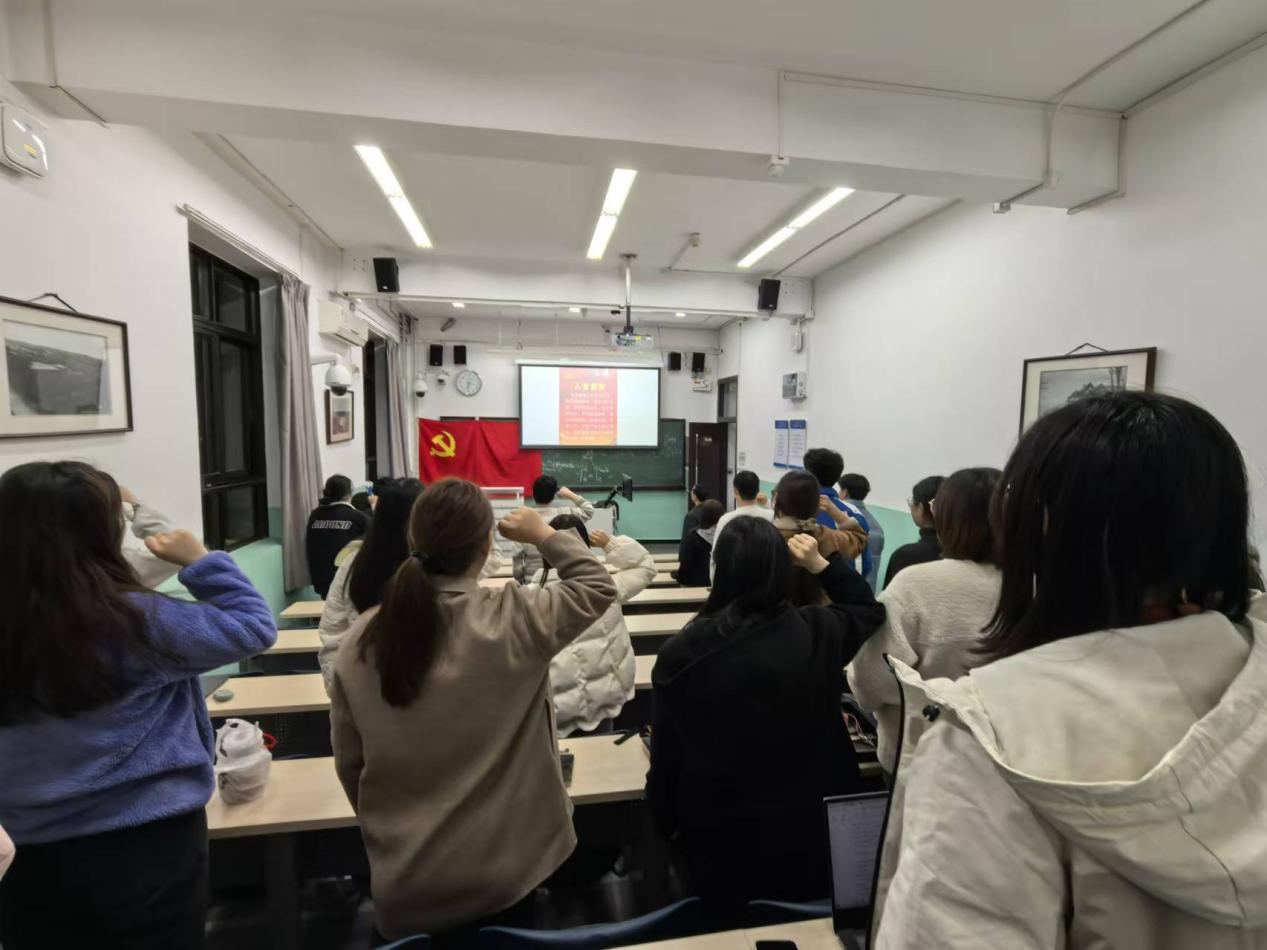 最后,胡思源老师携新老党员同志重温入党誓词。此次会议圆满结束。