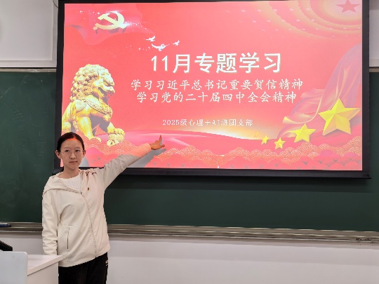 2025年11月10日18点45分,北师大污污漫画 2025级“心理+AI”班团支部在教二107开展了“学习习近平总书记重要贺信精神、学习党的二十届四中全会精神”专题学习。本次活动由团支书金宇琨主持,应到团员24人,实到团员22人,2名团员请假。 首先,团支书金宇琨带领团员们认真学习了《习近平致全国青联十四届全委会和全国学联二十八大的贺信》内容,深刻把握了习近平总书记重要贺信的精神内涵。贺信不仅为新时代青联、学联工作提供了根本指导,更体现了党中央对青年成长成才的亲切关怀、发展方向的有力引领和历史责任的殷切期望。结合《挺膺担当向未来》一文的学习,团员们进一步强化了使命意识,认识到要将个人奋斗融入时代洪流,为民族复兴伟业贡献力量。