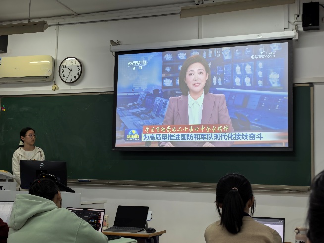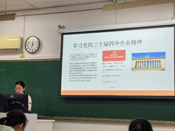 接着,通过观看视频、阅读《中共中央关于制定国民经济和社会发展的第十五个五年规划的建议》及相关解读文章,同学们深入学习领会了党的二十届四中全会精神。
