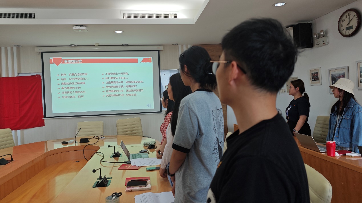 会议开始,党支部全体成员起立,合唱《国际歌》。