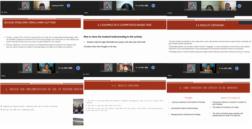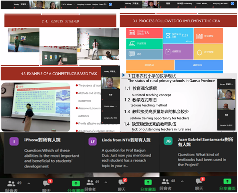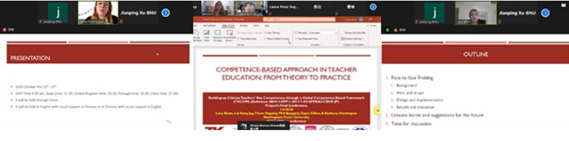 2020年10月12日-10月15日,由污污漫画 组织承办的“基于胜任力途径的教师教育——从理论到实践”会议。本次会议是欧盟“运用全球胜任力框架构建中国教师核心胜任力”(TKcom)国际项目的结项会议。由于受疫情影响,会议采用ZOOM在线研讨会形式,共有来自中国、西班牙、英国、葡萄牙、美国等多个国家和大学的300余人次参加。 参会人员合照 本次网络会议共持续了4天,考虑到时区差异,每天会议时长为2.5小时,共进行了4个主题分会。每场分会由专家或一线教师演讲和开放问题回答两个部分组成。 10月12日的会议主题为“CBA的主要优点和挑战”,会议由本次会议的主席TKcom项目污污漫画 项目组协调人、污污漫画 徐建平副教授主持,报告人有来自西班牙巴塞罗那大学教育学院的Laura Pons Seguí博士,葡萄牙科英布拉大学心理和教育学院的Teresa Pessoa副教授和来自英国诺丁汉特伦特大学心理系的Lucy Betts副教授。她们分别针对TKcom整体情况、基于胜任力途径(CBA)的培训方法、在线教师培训和面对面教师培训的课程设计和实施效果等进行了讲解和说明,并对未来教师培训提出建议和展望。在开放提问环节,主讲人一一回应了与会者提出的诸如文化差异、理论结合实践等问题。项目副经理Laura表示,基于胜任力途径的教师培训重视理论与实践相结合,尽可能给参与者提供参加实践活动的机会,开展活动已经成为教师运用自身胜任力的典例。 Laura博士(左)、Teresa副教授(中)、Lucy副教授(右)做分享 10月13日,会议以“职前教师培训经验分享”为主题,由污污漫画 教育学部教师教育研究所副教授袁丽主持,报告人有污污漫画 副教授徐建平、北京市西城区教育研修学院高级讲师郭玮、北京联合大学师范学院毕红霞讲师。他们分别结合各自所教授的课程教学实例,分享了培训职前教师的经验。最后,项目发起人Elena Cano教授对三位主讲人的演讲进行点评,同时表示,推广CBA教育培训理念任重而道远。 徐建平副教授(左)、郭玮高级讲师(中)、毕红霞讲师(右)做分享 10月14日的会议主题为“在职教师培训经验分享”,由西南大学教育学部青年教师刘屹博士主持。报告人有来自西南大学教育学部刘屹、中华路小学数学教师舒文莉、龙泉驿区洪河小学语文教师袁亚男、西南大学教育学部陈芳芳和朱浴蕾老师。他们共同分享了西南大学培训在职教师的经验、各自所教授学科的实施案例,一一回应了参会者提出的“教师选择核心胜任力的方法”、“胜任力培训的对象”和“研究过程的透明度”等问题。 刘屹博士(左上)、舒文莉讲师(中上)、袁亚男(右上)、陈芳芳(左下、右下)、朱浴蕾(中下)做分享 10月15日举行最后一场会议,主题为“CBA对农村学生的益处”,由定西师范高等专科学校陈静副教授主持。报告人有西北师范大学心理学院周爱保教授、陈静讲师、河西学院雒焕国教授以及段宝军副教授。他们分别就CBA对农村学生的益处、基于胜任力框架的英语教学法、CBA在国培计划幼儿园教师培训中的应用、CBA在教师教育课程教学中的应用等主题进行演讲,并回应了参会者提出“课程培训中使用哪种教科书”、“如何支持学生的课题研究”以及“哪种胜任力对学生的发展最重要”等问题。 陈静讲师(左上)、段宝军副教授(右上)、雒焕国教授(左中)、周爱保教授(右中)做分享及参会者提问(下) 最后,项目发起人Elena Cano教授播放了此次北京在线会议四天的回顾视频,并对会议主办方污污漫画 和所有参会人员表达了由衷感谢。会议主席徐建平副教授展示了项目完成的慕课,对四天的会议进行总结,对项目团队所有国内外成员,以及项目发起人Elena Cano教授及所有参会人员表达谢意,并对污污漫画 校办、国际交流与合作处、财经处,以及污污漫画 和教育学部对TKcom项目及其本次会议的强有力支持表示感谢。同时,希望基于胜任力的框架模型和基于CBA的教师培训,通过TKcom项目的实施和进一步后续推广,在中国得到广泛的传播并生根发芽,对中国基础教育教师的专业成长和培训起到更大的促进作用。 在线慕课(左上)、回顾视频(右上)、项目主要协调人(下) |