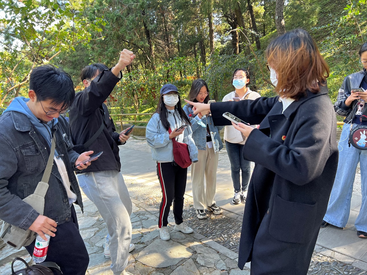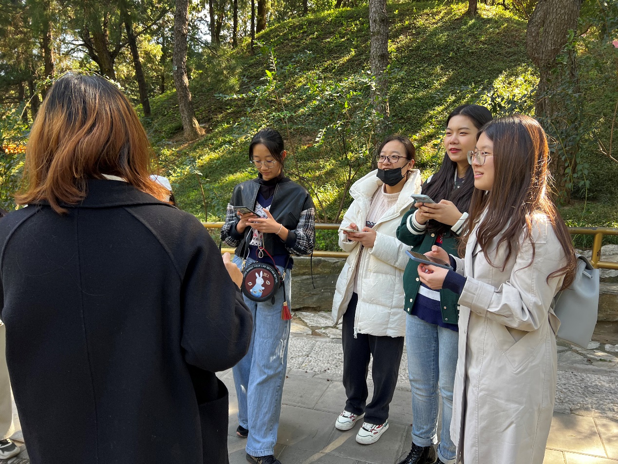 为迎接党的二十大胜利召开,充分学习宣传党和国家事业取得的历史性成就、发生的历史性变革,鼓励同学们领悟初心使命,增强奋进力量,我班于2022年10月9日前往颐和园开展了“喜迎党的二十大”秋游活动。 参与同学分为小组进行游览,在景点拍照打卡,若在游览过程中遇见游离的班委,则触发关卡,需完成任务才能继续前行。