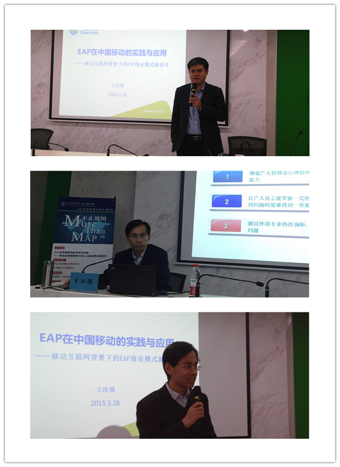 2015年3月,在这个春暖花开的一年伊始,在这个适于汲取新知识的新学期,污污漫画 心理学院2014级应用心理(EAP方向)专业硕士迎来了一次新的感受企业EAP新动态的机会。28日晚,中国移动通讯集团公司党群工作部直属党委办公室副主任王汝强先生为同学们带来了一场主题为《EAP在中国移动的实践与应用——移动互联网背景下的EAP商业模式新思考》的分享讲座。本次讲座由心理学院副院长张西超老师主持。张老师热情介绍王汝强主任是北师大2004届校友,具有8年EAP从业经验,是EAP工作推动者和实践者。本次公益讲座的行程既是他对师弟师妹们的关心,也是对母校的回馈。王主任开场就以师兄的口吻亲切地和同学们打招呼,接着就中国移动EAP项目的探索和发展,国内EAP项目的引入和实践,挑战和问题,机遇和展望这几个方面侃侃而谈,并与与会同学进行了深入交流。 图1:王汝强学长为2014级应用心理专硕学生分享EAP实战经验、张西超老师担任本场主持人 王主任从四个部分分享了他对EAP项目在企业推动与运营的感受与经验。第一部分是从EAP项目在移动公司开展的背景、引入、指导方针、推动模式、项目定位、推动进程和成效等方面对中国移动EAP项目进行梳理和分享。他认为,中国EAP的发展看似偶然,实则必然。 EAP对中国的影响,不仅再于EAP本身,更是EAP以人为本理念给人传达的力量。第二部分则客观中肯地探讨了中国EAP十五六年中的迅速发展,目前存在的问题以及解决方向和途径。他认为EAP在规范性、说服力和市场竞争中都有提升的空间。同时他也指出,中国企业EAP有着散落在不同职能中的定位,而他也相信中国企业EAP最终回归其本身。第三部分中,王主任谈到了移动互联网为EAP带来新机遇,并在第四部分设想了EAP与移动互联网的结合模式,从大设想到小细节都显示出了王主任对EAP事业的重视和期待。 王汝强主任精彩的演讲内容和风趣幽默的演讲风格感染了在场的每一位同学,大家非常珍惜与王主任难得的交流机会,场下掌声此起彼伏,提问争先恐后。王主任真诚建议同学们走向实践,发展人脉。与此同时,他和张西超老师都表示愿意对同学们在EAP上的职业发展给予帮助和支持。活动最后,为了感谢王主任的无私倾授,张西超老师代表同学们送上礼物。 图2::2014级应用心理专硕学生与主讲嘉宾互动 同学们对王主任在EAP中的认识和成绩表示钦佩,也敬佩他的真诚和客观,更被他的思想深深启发和感动。在演讲的过程中,王汝强主任不断强调2014级应用心理(EAP方向)专业硕士就是中国EAP的黄埔一期,话语之中尽显深厚的期望。他说:“EAP人要有梦想,万一实现了呢?”EAP班级的同学们有良师的引领,有前辈的指导,有益友的支持,今天迈进了EAP的大门,明天也会坚定地走好EAP的大路。