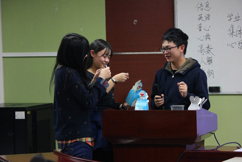 2015年12月30日下午,心理学院15级三班“诚信备考,平安离校”主题班会在后主楼1420成功召开。本次班会由班长张子健同学主持,班主任李昕益老师和兼职辅导员出席了本次班会,15级三班全体同学参与。 首先,张子健同学为大家准备了一段关于“诚信”的动画短片,幽默风趣的风格成功吸引了大家的眼球。 然后,李昕益老师向同学们传达了“认真备考,诚实应考”的观点,并开展了安全知识教育。 最后,雪绒花使者王子洋以小游戏成功缓解了大家备考阶段的紧张情绪,引得现场同学的阵阵欢笑。 通过本次班会,每位同学都对诚信考试有了更深刻的认识,同时,备考阶段的紧张情绪和心理压力也有所缓解。 (心理学院2015级本科3班 刘夕琳供稿,史博文供图) |
