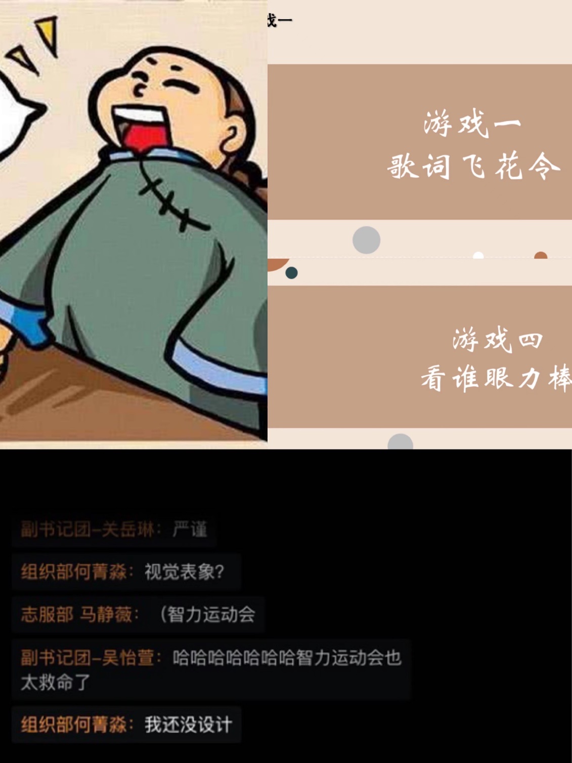 接着,团委各成员以部门为单位,进行了“飞花令”“看图猜成语”等团建活动,各位成员都积极参与,热情高涨,成员之间更加熟悉默契。