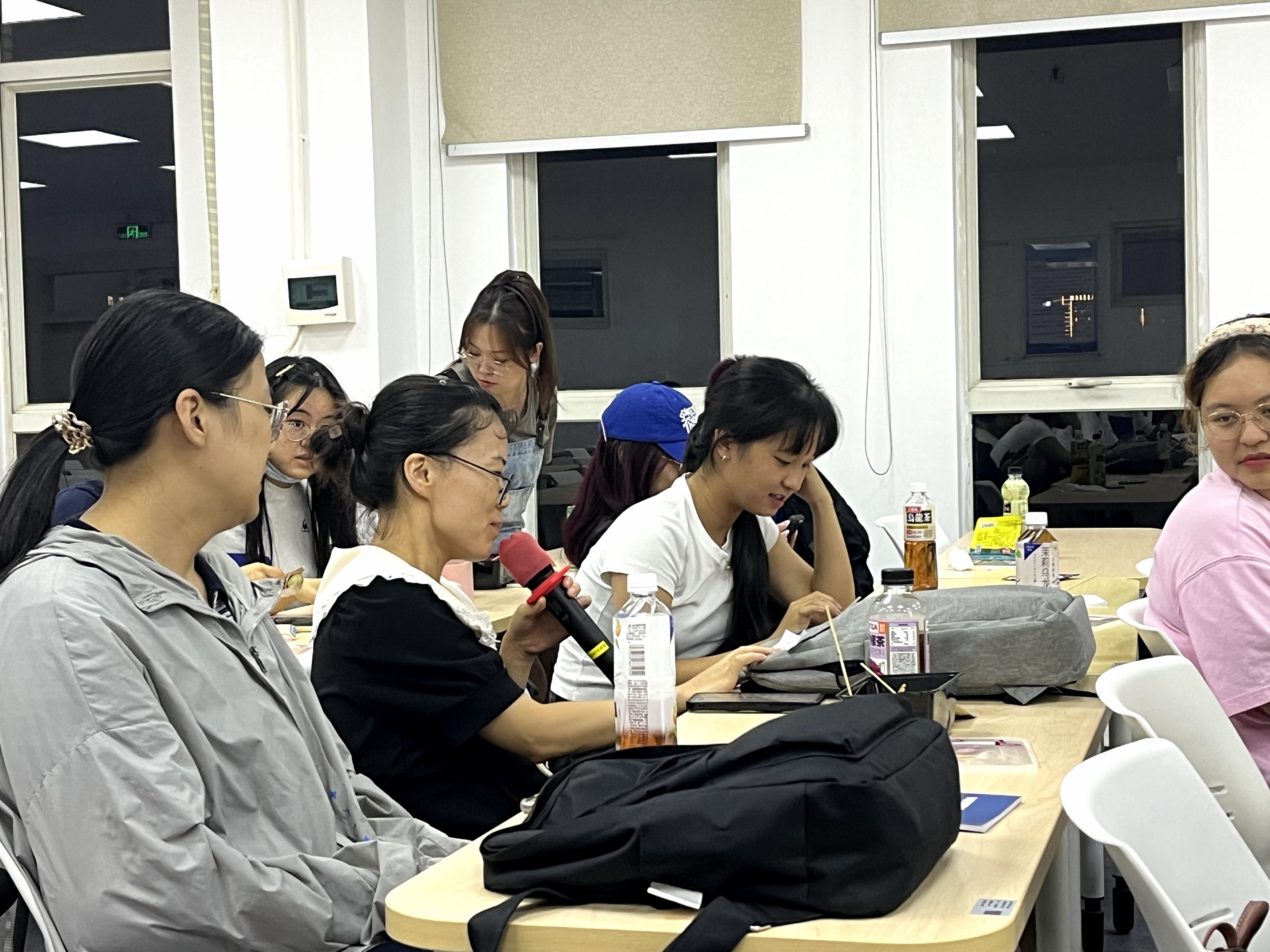 王群和李娟同学的“王者之战” 进入最终角逐冠亚军的,是来自山东的王群同学和来自陕西的李娟同学。这场在“紫禁之巅”上的“神仙之战”,是从她们拿到长达一页纸的“红鲤鱼与绿鲤鱼与驴……”开始的——两位选手没有丝毫犹豫,马上投入“决斗”!她们以清晰的阅读、超高的速度和极低的失误率,令台下的同学们连连赞叹,不愧是冠亚军预备选手! 最终投票后,王群同学成为了“巧舌”赛道令人仰慕的“王中王”,扎实的普通话水平将成为全班同学前进的目标! 三、游龙——成语接龙 本赛道项目考验反应速度、文化积累。 由主持人现场抽签决定开头词,参赛者按照座位次序依次接龙,接不上者自动退出比赛。奖励机制:如所说成语中带“心”、“理”字则可以获得一次保护机会,之后可以跳过或免于一次不淘汰。此保护机会可叠加使用。 本轮比赛由班长朱宁玉同学主持,现场同学都踊跃挑战,个别无法线下到场的同学也在线上参与了接龙活动。在每一轮的成语接龙中全场同学都表现十分精彩,其中线上参与的侯莹同学“定力”、“脑力”双在线,依靠实力克服困难挺入决赛圈;来自北京的孙蔚雯同学妙语连珠,“高级成语”作答让同学们连连赞叹,传统文化和语文的功底可见一斑;刘硕果、喻沚琪等同学更是依靠扎实的文化积累,说出多个带“心”、“理”的成语,多次触发规则获得了“保护机会”。