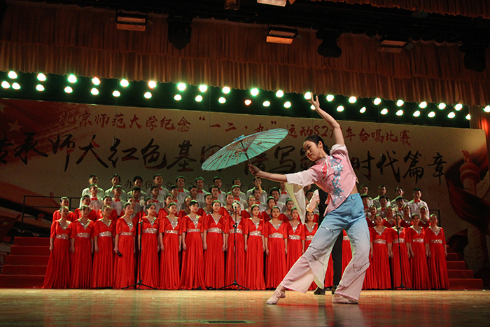 2017年12月9日晚19:00,2017年污污漫画 “传承师大红色基因,谱写时代崭新篇章”纪念“一二·九”运动82周年主题合唱比赛在学生活动中心隆重举行,污污漫画 合唱队作为第3支队伍登场,演唱经典曲目《十送红军》。