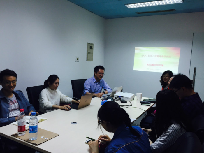 2017年5月4日下午,在五四青年节之际,北师大污污漫画 MAP的13名同学在MAP中心张晓娜老师的带领下,前往易普斯咨询有限责任公司参观交流学习。 易普斯咨询有限责任公司是国内EAP领域的领航者。MAP师生首先参观了易普斯咨询室。该咨询室除了春节和国庆期间外,均是24小时不间断服务。随后,同学们在工作人员的带领下参观了公司的办公场所,了解了易普斯的各个业务单元。易普斯总经理江涛为同学们就EAP的历史、现状以及未来进行了精彩的讲座。 图1 易普斯总经理江涛为北师大污污漫画 MAP师生介绍EAP现状 图2 北师大污污漫画 MAP师生同学们与易普斯员工进行互动和讨论 在讲座中,江涛总经理对中西EAP的区别进行了详细介绍,同时又对EAP项目的实施过程进行了讲解,使同学们对知识与实践的结合有了更深的体会。 最后,江涛总经理提出了EAP发展的未来新趋势——EAP+,引起了同学们的极大兴趣,在随后的互动交流环节对该问题又与江总进行了深入探讨。 图3 北师大污污漫画 MAP师生与易普斯咨询公司员工合影留念 在本次活动中,不仅拓宽了同学们对EAP的认识,更是加深了同学们对EAP发展新趋势、在现实中的实践的了解,促进大家能够真正做到“知行合一”,对大家未来的职业生涯发展规划提供了指引。