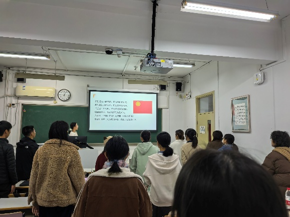 2025年11月10日18点,北师大污污漫画 2025级“心理+AI”班团支部于教二107举办了“向中华民族伟大复兴奋勇前进”主题团日活动。本次活动由团支书金宇琨主持,应到团员24人,实到团员22人,2名团员请假。 首先,全体起立,奏唱中国共青团团歌。其后,团支书金宇琨简要介绍了本次活动的开展背景、宣讲讲师及主要内容。