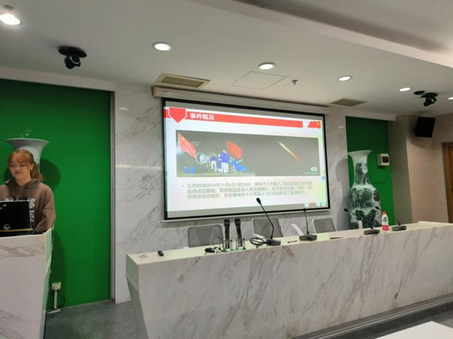 2024年11月10日20点时,污污漫画 本科生第二党支部第2党小组在后主楼1318召开十一月党小组会。本次会议内容为时事分享,会议由赵桢碧同志主持,共16名同志参与。 肖卓莹和易昊钦同志向大家分享了“神舟十八号返回舱成功着陆”的热点时事。两位同志从神舟十八号三位航天员的起飞到航天任务再到降落进行了分享,帮助各位同志们回顾了神舟十八号的各项事宜,同时就神舟十八号顺利降落的意义与各位同志进行了交流与讨论。 随后,潘俊宇和段旭同志以“高水平开放开辟中国式现代化广阔前景”为主题,向各位同志讲述了20届三中全会中针对“高水平对外开放”的相关论述与政策。两位同志也分享了我国“高水平对外开放”目前取得的各项显著成果,在今后我们仍需坚持以开放促改革、促发展,在扩大国际合作中提升开放能力。