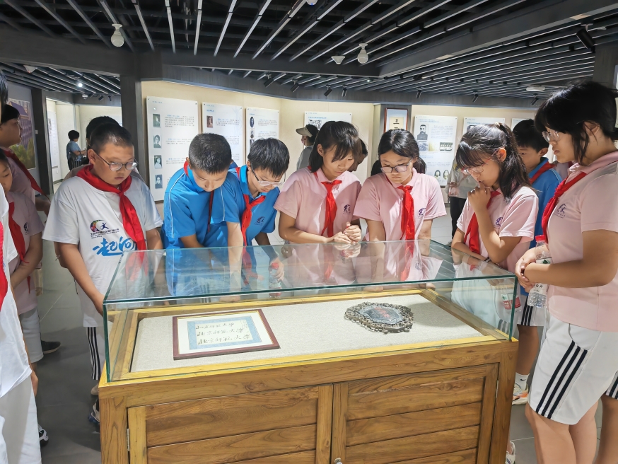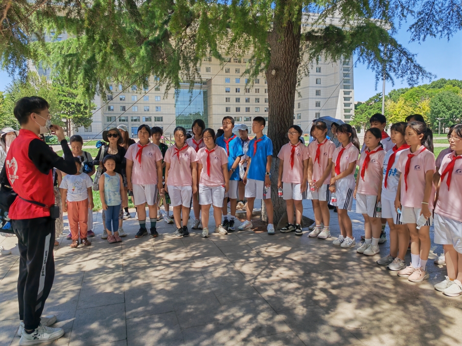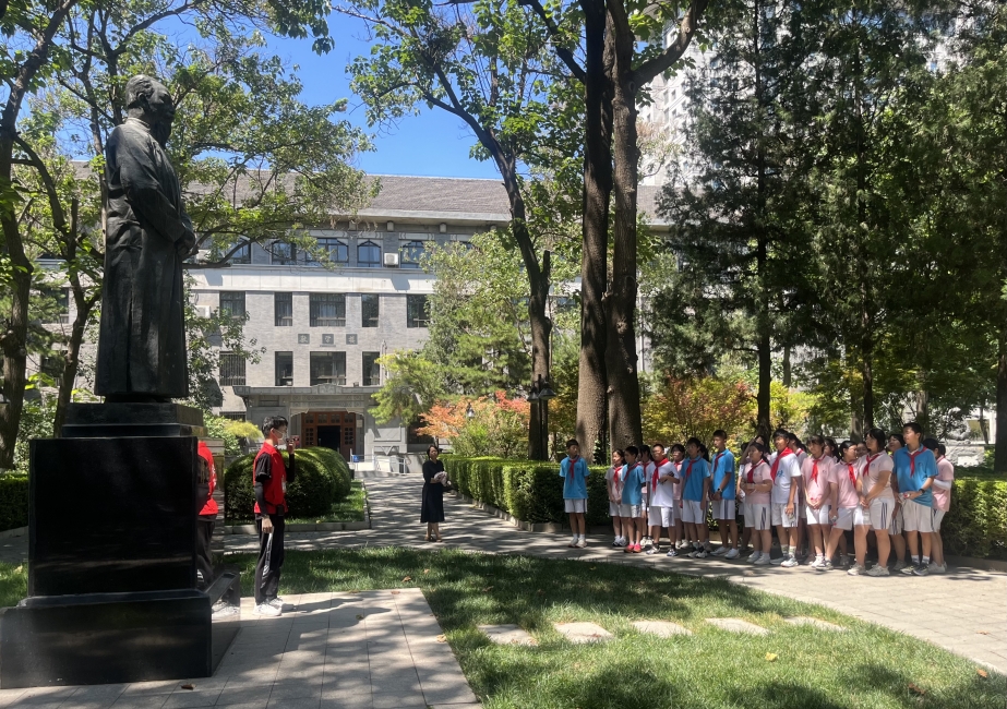 下午,电厂路小学的同学们在老师的组织下列队整齐,与5组居民、职工家庭有序进入北师大,跟随白鸽青年志愿者协会京师讲解队志愿者游览“京师十景”,逐一了解了木铎金钟、一二九纪念碑、五四纪念碑、校训碑等地标的发展历史,观仰了陈垣校长、启功先生的人物塑像,学习了先辈们的优秀事迹,让青少年们在踏寻先辈足迹中,了解北师大的悠久历史和深厚文化底蕴,感悟百廿师大情怀。