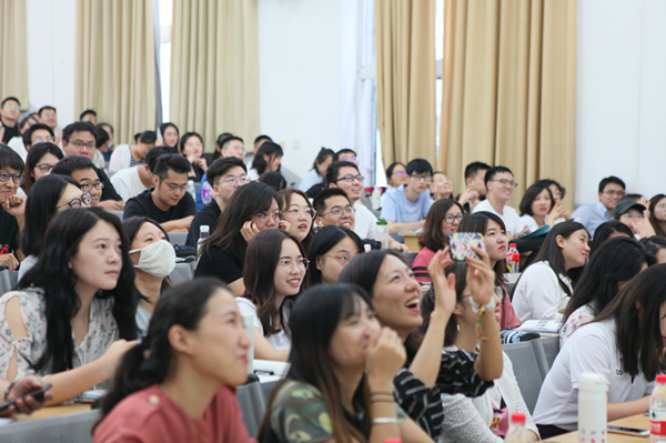 首先污污漫画 刘春荣副部长想19级MAP新生表达了欢迎和祝贺!随后她介绍了我部心理学科的发展,谈到北师大心理学以及每一个心理学人的使命,结合MAP实践培养的特色,特别强调MAP培养中践行的“研产学”思维。传统的“产学研“模式””以“产”为出发点,注定了这个模式囿于职场实习效果,只能弥补社会眼下急需的技能而培养训练出快捷、单一的技能。从长久来看,飞速发展的社会更需要洞悉前沿信息、具有宽阔视野、掌握崭新科研成果的高端人才。因此在北师大MAP培养中挖掘利用海内外高端师资队伍,瞄准国际前沿,发挥科研优势,形成先进的研究成果,在此基础上,瞄准市场,对接实践,研产结合,形成市场化。在这个过程中,带领学生目睹并参与了革新,成为站在时代前沿、可以胜任未来职业的育人功能。这也就要求学生重视学习和科研对实践学习的重要性,鼓励同学们积极参加实践创新项目,磨炼自己的研学能力,并提升内在韧性的综合素质。 图5 污污漫画 MAP教育中心主任孙舒平老师在MAP2019级新生入学教育上致辞
