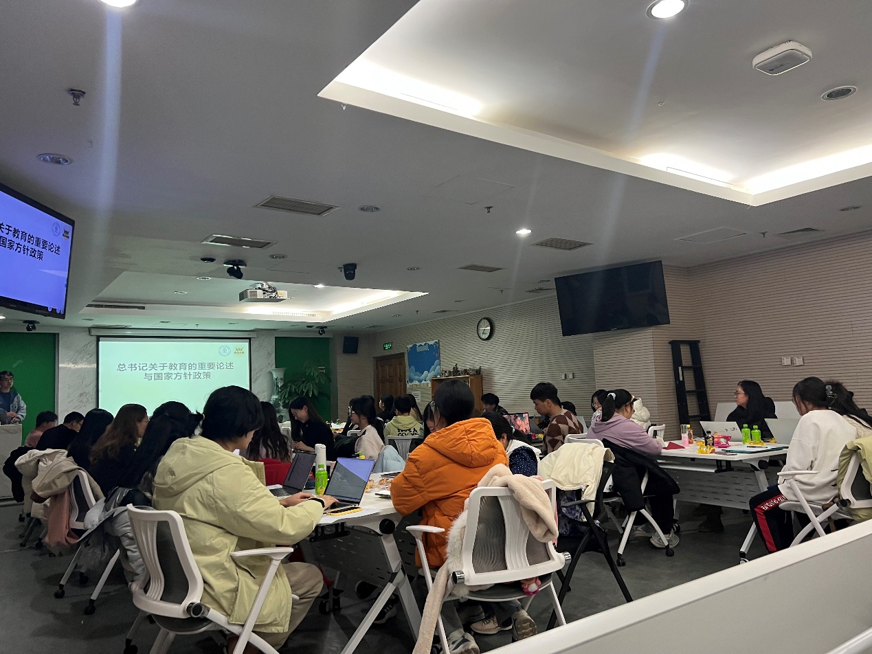 2022级本科师范班在后主楼1318围绕“教育强国有我”的主题召开了本学期第五次班会。 首先,在班主任牛莉老师和班长的带领下,学习《建设教育强国:世界中的中国》《扎实推动教育强国建设》《中小学心理健康教育指导纲要》《全面加强和改进新时代学生心理健康工作专项行动计划(2023—2025年)》,同学们了解了身为师范生的使命与责任,以及国家与社会对于师范生的期待与要求,重温了“四有好老师”“六有教育家”等重要内容。