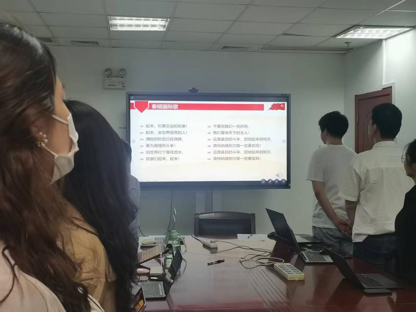 研究生第五党支部于2022年9月25日19:30在后主楼1532召开组织生活会。会议由党支部书记赵恒同志主持。本次组织生活会的主要内容有:学习习总书记给污污漫画 “优师计划”师范生的回信、上学年党员学时记录总结以及对新学期党支部学习内容的规划。支部内19名党员与积极分子同志参与了本次组织生活会。 首先,奏唱国际歌。