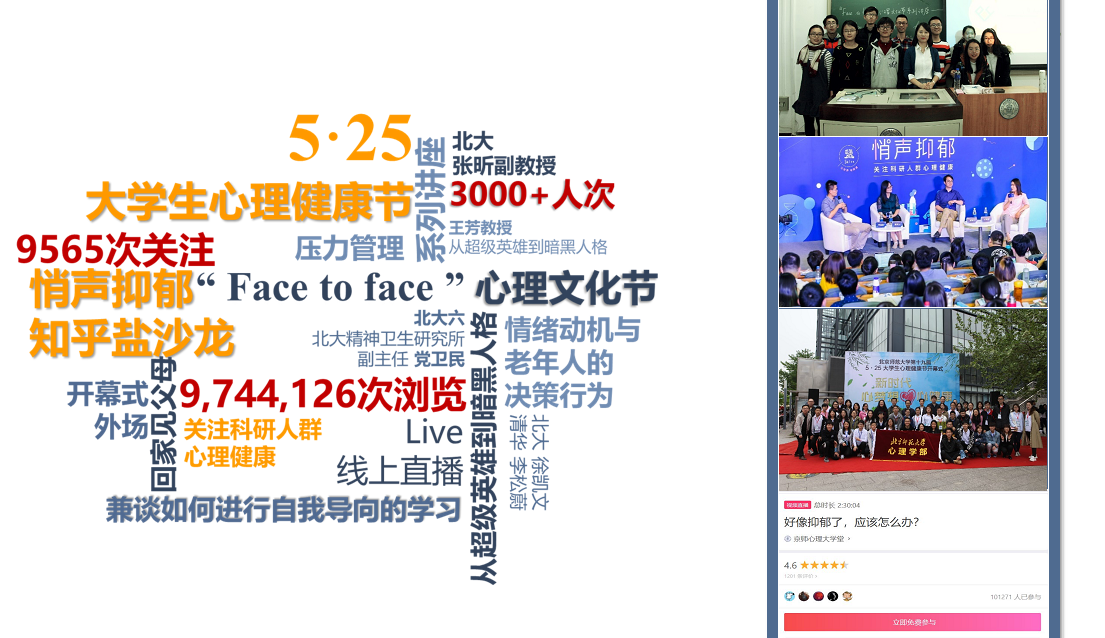 “有本领”,激发校园文化活力、提升学术科技潜力。一年来,学部团委积极盘活各种资源,助力专业发展,提升青年活力,让同学们学好又玩好。依托5.25大学生心理健康节,与知乎联合举办“悄声抑郁”盐沙龙活动,开展心理主题讲座20余场,举办全民健身月,举办各类文艺活动和即兴戏剧表达等心理健康活动十余场。同时,引导学生积极进行心理学成果转化,开展学术科技和创新创业辅导工作,京师杯共18篇获一二三等奖,获创青春市级银奖1项、学校创新创业大赛银奖1项、铜奖1项。