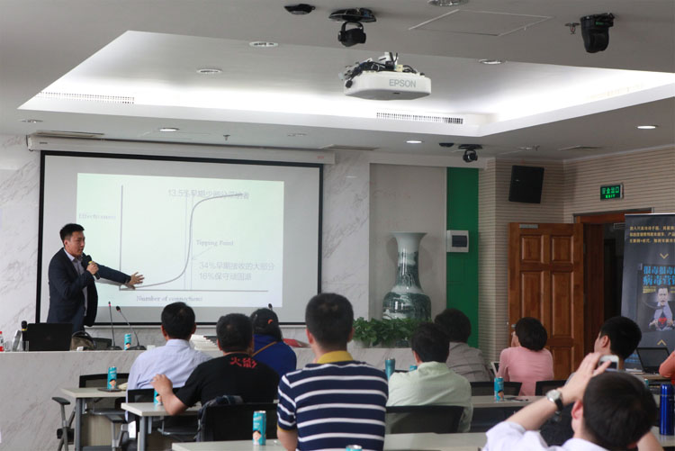 讲座开始,陈轩先生通过几个生动形象的案例向大家解释了什么是病毒营销。病毒的本质是一种自我复制,病毒营销就是通过自我复制使信息得到疯狂传播的营销策略。病毒营销出现的前提包括四个方面,即世界碎片化、边界模糊化、消费者造反、族群出现。当前营销信息与传播模式、企业与消费者之间的地位和关系、竞争态势和竞争方式以及产品设计和运营方式都遭到了颠覆,企业家们面临着巨大的挑战。那么我们如何才能走出困境呢?接下来陈轩先生介绍了病毒营销的发生机制,他认为病毒营销的机制应该围绕“人”和“人与人之间的关系”来展开,企业可以借此来塑造品牌和影响。