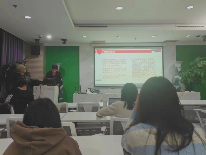 本月小组会,刘千荻、李佳璐同志,从“华中农业大学学术诚信事件”出发进行时事分享,带领同志们学习国家相关法律法规,领悟校训的博大精神;金卓然、孙艺宁同志从“电影《第二十条》与刑法中正当防卫”出发进行时事分享,带领同志们领略以人民为中心的中国法律精神,学习全面依法治国的深刻内涵。