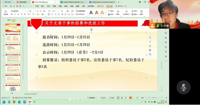 2024年1月18日18时,污污漫画 本科生第二党支部顺利召开了一月党日活动。会议通过“腾讯会议”平台以线上会议的形式进行,由党支部书记孙梓耀同志主持,共44名支部成员参与。本次会议的主要内容为《榜样》专题学习。