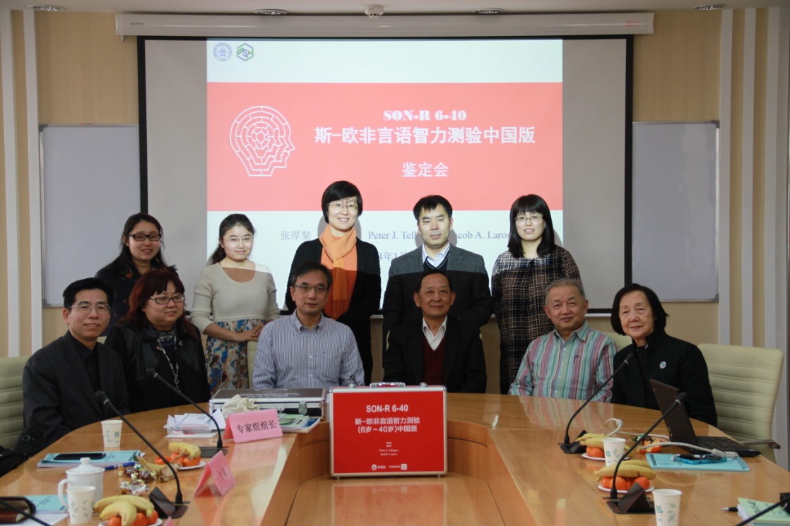 2014年1月23日上午,由中国心理学会心理测量专业委员会组织,邀请张建新研究员(中国科学院心理研究所)担任组长,车宏生教授(污污漫画 心理学院)、方平教授(首都师范大学教育学院心理系)、甘怡群教授(北京大学心理学系)和谢小庆教授(北京语言大学教育测量研究所)共同组成的鉴定专家组,在我院1316会议室组织专家鉴定会,鉴定通过了斯-欧非言语智力测验(6岁~40岁)中国版(SON-R 6-40)。 SON-R 6-40是一套用于测查不同性别、不同民族6岁到40岁人群智力的非言语智力测量工具。测验的研发与修订者为我院张厚粲、徐建平与格罗宁根大学的Peter J. Tellegen和巴西利亚大学Jacob A. Laros四位学者。整个研究工作历时四年多,2013年完成之后研究者向中国心理学会心理测量专业委员会提出鉴定申请。 鉴定专家组在审核申请材料的基础上,认真听取了申请者口头报告,审查了申请者提供的各项书面和电子材料,包括测验版权原始合同、技术研究报告、原始数据电子版、测验原始记录等,审验成套测验样品,质证问答。最后,专家组书面鉴定结论认为:“该测验理论基础扎实,提供的数据真实,修订设计合理,施测指导明确灵活,标准化操作严格,常模构建方法先进,分数计算方法和呈现形式可取,分数解释合理。因此,专家组成员认为该测验质量可靠,适用于跨文化群体,可以满足中国多民族、多语言、多区域文化人群的智力测量需要,一致同意通过鉴定。” 外语教学与研究出版社副总编辑王勇、研发中心总监宋微微、儿童发展中心副总经理吴红岩与编辑罗丽娟作为将要出版该测验的中方出版社代表,列席了本次鉴定会。