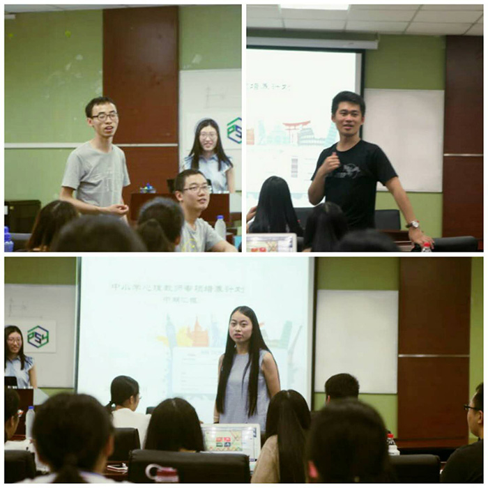 2016年7月23日18:30,我院MAP中小学心理教师专项培养计划中期汇报在后主楼1420成功举办。史佳鑫老师参与了本次中期汇报,同时邀请了已经毕业成为心理教师的校友湖南师大附中专职心理老师袁春龙、贵阳一中心理教师陈美玲、天津市滨海新区大港第二中学心理老师陆智远和安徽省宿州市第二中学心理老师张立国作为嘉宾进行点评与经验分享。