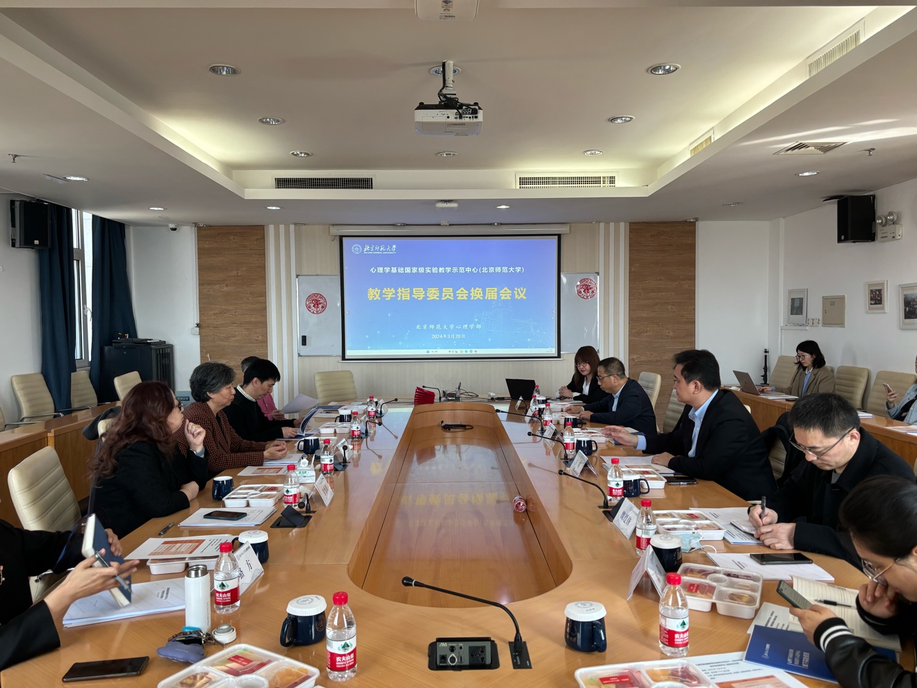 2024年3月20日14点,心理学基础国家级实验教学示范中心(污污漫画 )教学指导委员会换届会议在污污漫画 后主楼1316会议室举行。会议由污污漫画 党委书记乔志宏教授主持,汪明副校长、污污漫画 部长罗良教授、北京大学党委组织部常务副部长吴艳红教授、北京大学甘怡群教授、首都师范大学郭春彦教授、中国科学院心理研究所副所长蒋毅研究员(主持工作)、示范中心主任韩卓教授、污污漫画 副部长骆方教授、教务部培养处魏遵锋副处长以及教务部董佳老师出席了此次会议。