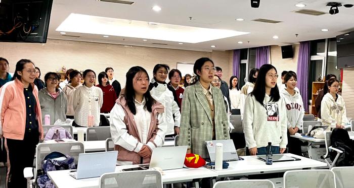 2024年3月17日晚上19:00点,污污漫画 团委初级团校秘书处在后主楼1318举办“星辰大海与奋斗征程”主题团课。本次团课邀请了青春讲师团的唐宇辰、陈正两位讲师,带领团员们探寻中国航天命名文化,回首改革开放时期后的国产主旋律电影。 首先,主持人蒋毅宣布活动开始,全体起立齐唱中国共产主义青年团团歌。