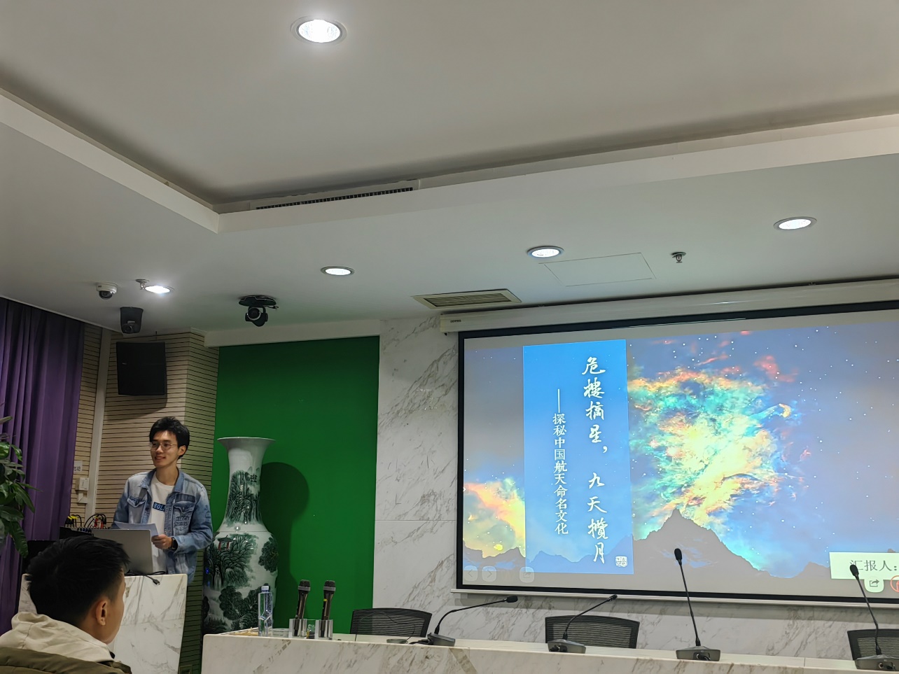 接着,由唐宇辰讲师带来关于“中国航天的命名文化”的宣讲,以小切口展现大背景,讲述了中国航天科技成果命名的原因与重要意义。透过一次次的命名,团员们看见了古人对于宇宙的不懈探索、今人对于情怀的浪漫拥抱。这些富有深意的命名不仅来自源远流长的中华文化,也彰显了航天人的优秀品质。