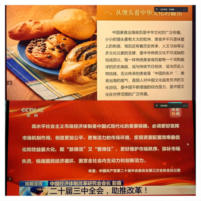 2024年7月,污污漫画 本科生第二党支部的四个党小组,以线上“腾讯会议”为桥梁,跨越时空界限,顺利开展了以“党的二十届三中全会精神”为主题的专题理论学习。此次学习不仅使得同志们的政治敏锐性得以提升,更是一次心灵的交流与思想的碰撞,增强了同志们对国家大事的理解和对人民生活的关注。 2024年7月26日晚20:00,污污漫画 本科生第二党支部第1党小组在“腾讯会议”线上平台召开党小组会,会议由阿伊莎同志主持。本次会议学习的主题为“中国文化输出——中国馒头进军法国面包节”以及“学习二十届三中全会精神”,共13名同志参与本次党小组会。首先,王芮同志带领大家共同学习了近期热点——二十届三中全会精神,分别介绍了全会最重要成果、全面深化改革的重大成就及进一步深化改革与切实提高民生福祉的相关内容。同时,同志们共同观看了会议关键词“改革”的深入解读。随后,符思媛同志分享了“大国文化输出——中国馒头进军法国面包节”的热点时事,分析了事件影响及文化内涵。