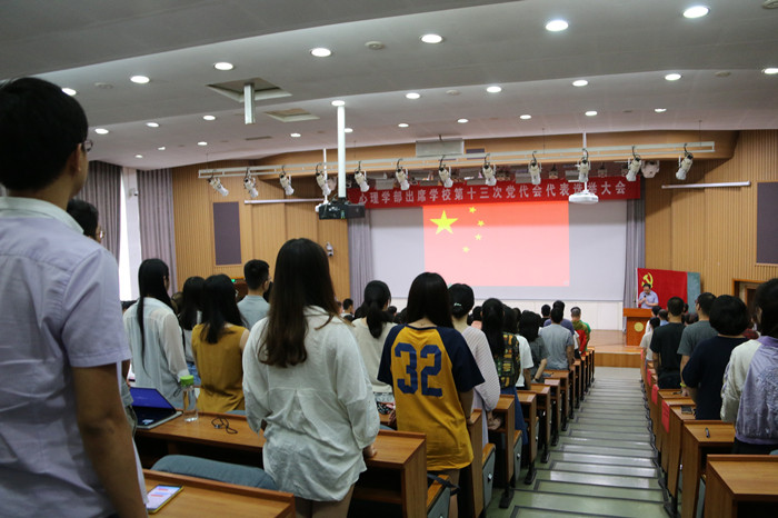 全体起立,奏唱国歌 首先,大会宣读并通过代表选举办法,分党委书记乔志宏对本次代表候选人预备人选的酝酿产生过程进行了说明,与会正式党员举手表决通过代表候选人名单。 分党委书记乔志宏宣读代表选举办法