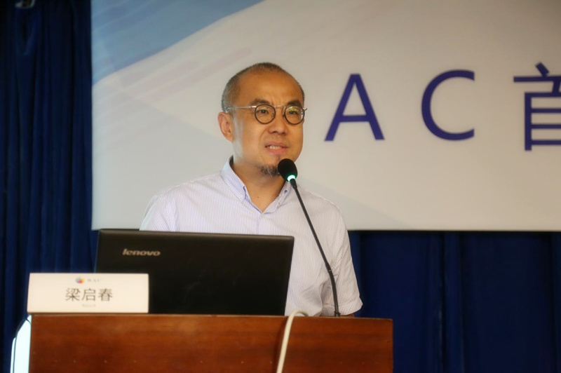 图6 伟达公关首席执行官梁启春先生在MAP-BAC方向首届开学典礼暨消费心理论坛上演讲