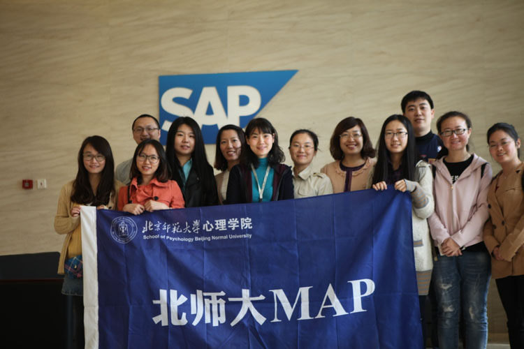 视野决定高度。作为未来应用心理领域的创业与创新式的领军人物,既精通本专业,又具有大视野、大情怀,这种境界需要立足象牙塔,也需要走进广阔的实践大舞台。为此,心理学院MAP教育中心积极搭建桥梁,带领学生走进各行各业,领略不同商业运营模式,探索商业下的人性微妙。MAP教育中心已经带领学生走进唐人智库(唐乡)、阳光易德集团和联想公司,参加了首届“中国教育创新成果公益博览会”。这一次,心理学院MAP师生又走进了SAP公司,及时了解企业创新成果,把握市场脉搏。
