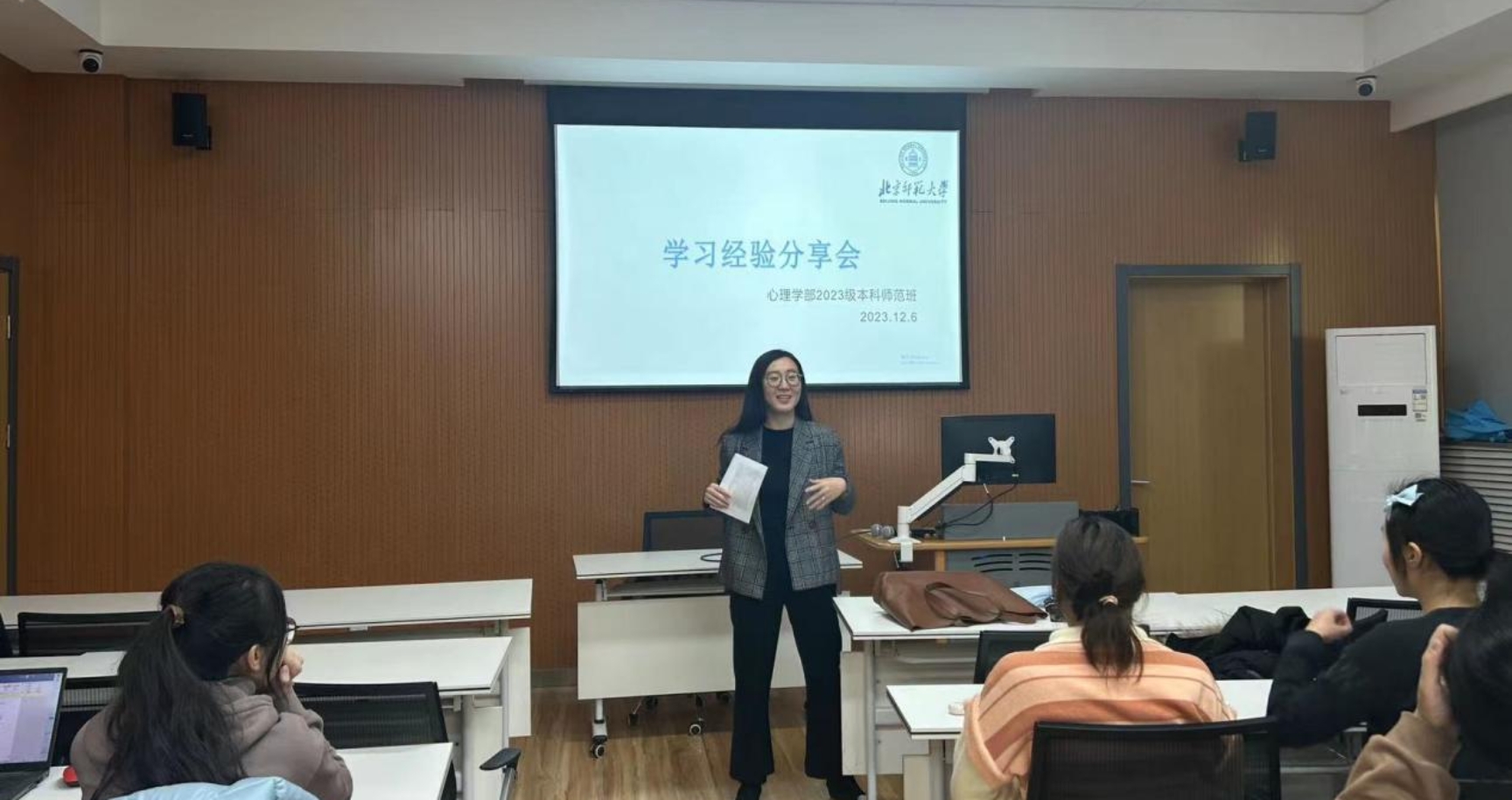 接着,优秀的师兄师姐们百忙之中为师范班的同学们带来了一些学习方法和经验。 21级师范班的黄彤彤师姐围绕大学生活中的体验与成长,为师范班的同学们梳理大学中的一些任务,在大学中肆意生活,允许一切发生。