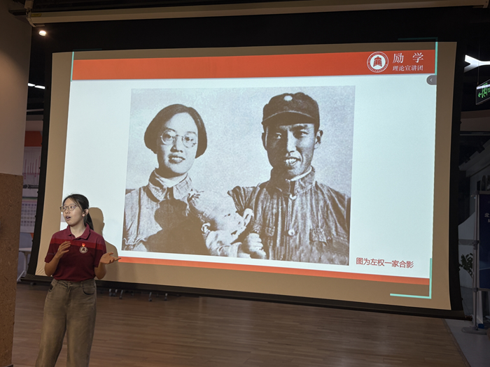 随后,来自哲学学院的陈欣怡同志为大家作题为《烽火中的“小人物”:平凡生命的抗战史》的主题宣讲。陈欣怡同志聚焦冀中地道战里“黑衣男女”掩护小战士、老乡用锅铲挖15公里地道等细节,道出“真正的铜墙铁壁是人民”。
