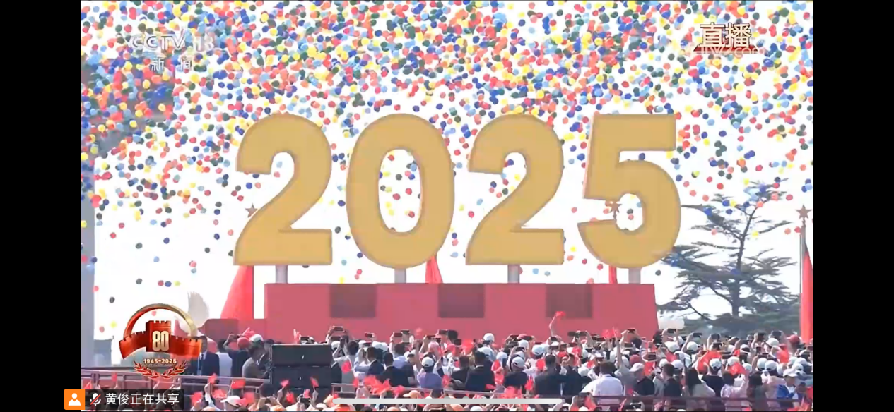 当阅兵仪式接近尾声,天安门广场上空,数万只五彩气球腾空而起,将澄澈天空装扮得绚烂多姿。巨型“2025”标识在气球的簇拥下熠熠生辉,金色的数字与缤纷的气球交相辉映,既定格住当下纪念历史的庄重时刻,更仿佛在向世界昭示着历史的传承与未来的期许。这一刻,线上观礼的党员们纷纷截屏记录下这一美好画面——在历史与未来的交汇点上,青年党员肩负的使命无上光荣:既要铭记抗战历史中凝聚的精神力量,更要以奋进之姿投身时代浪潮,用青春智慧与专业担当,为祖国的繁荣昌盛贡献力量。