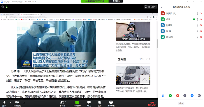 | 【班级】学习《习近平总书记给北京大学援鄂医疗队全体“90后”党员的回信》线上活动有效开展 |