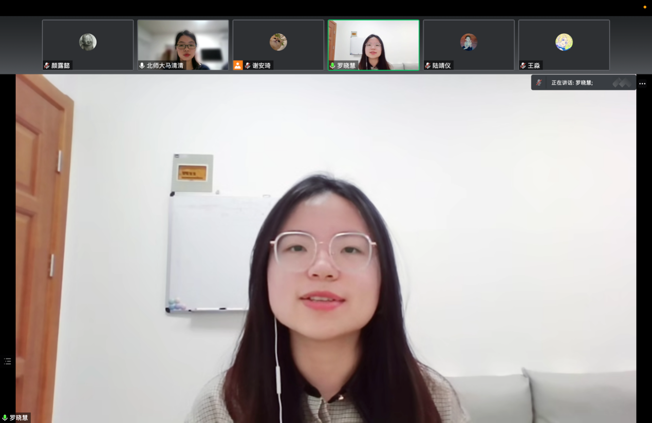其次,来自1班和2班的学生代表罗晓慧和王双仪同学结合自己的成长经历,分享青春践行二十大的经验与感悟。 罗晓慧同学从自己对心理与教育研究的热爱谈起,和同学们分享了自己对“如何成为一名新时代好青年”这个问题的探索与回答。她提到,在追求个人理想的道路上一直伴随着学校和国家的支持。作为新时代青年,我们有如此优越的发展机遇,怎能不努力探寻“我之于他人,之于国家社会的意义”?在学业科研之外,罗晓慧同学还积极参与了多项社会工作与志愿活动,在实践的过程中得到了答案——“国家的需要就是我们最好的答案。”
