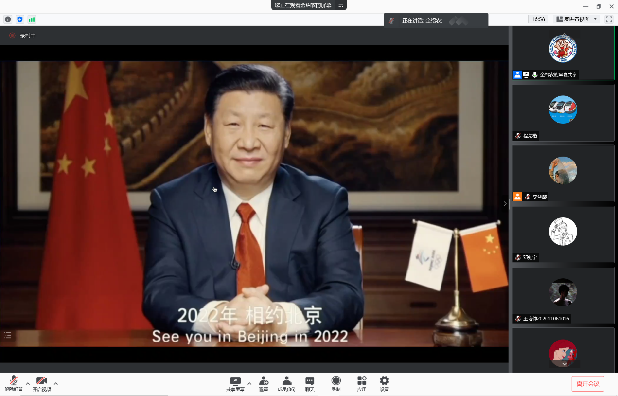 随后,金老师指出了冬奥会的重要意义,冬奥会是展示我国改革发展成就的重要窗口,是开展大国外交、促进世界和平的重要舞台、是传播中华文明、弘扬新时代精神的重要载体,是推动城市和区域协同发展的有利抓手。同时也能进一步提升延庆、张家口地区的经济社会发展水平,满足群众美好生活需要,不断提升市民健康水平。