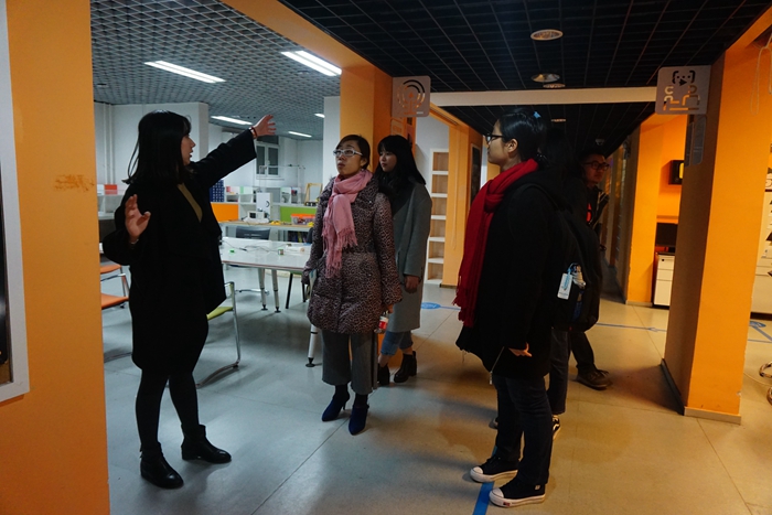 本次接待来访的是北邮数字媒体与设计艺术学院的侯文君副院长,侯老师首先介绍了北邮数字媒体与设计艺术学院的基本情况,各个专业方向主要的研究领域和需掌握的技能,以及学院的老师和学生的情况。学院MAP中心王娟老师也向侯老师介绍了北师大心理学院以及MAP用户体验方向的基本情况。 随后,侯老师引导大家参观了数字媒体与设计艺术学院的实验室和北邮的创新创业基地。参与此次MAP创新创业实践行的同学们表示此次参观交流收获很大,也很期待与北邮数字媒体与设计艺术学院进行合作,共同学习实践。