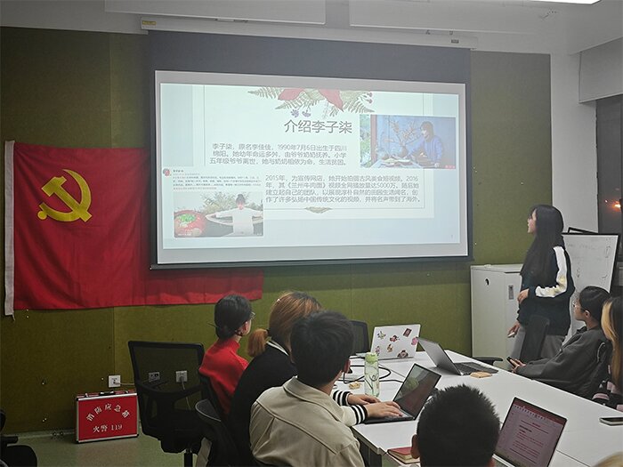张西然同志则分享了“李子柒回归”这一热点时事。李子柒的回归不仅让人们重新关注到传统文化的魅力,更增强了国人对传统文化的认同感和自豪感,对推动文化传承与对外传播起到了积极作用。