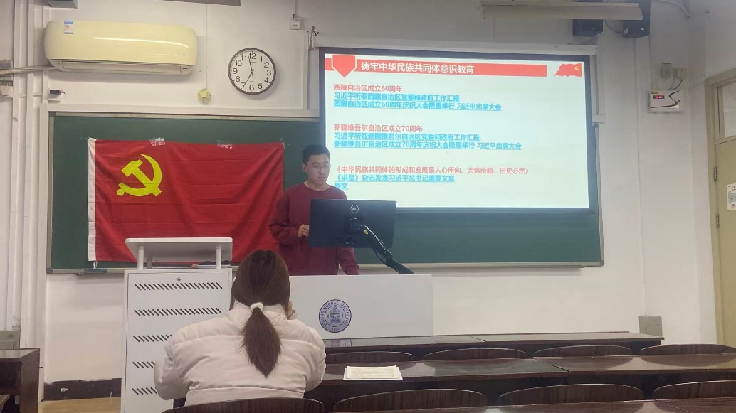 本次的主题党日活动由支部书记程先楷同志主持,主要内容是铸牢中华民族共同体意识教育。大家先后学习了西藏自治区成立60周年庆祝大会和新疆维吾尔自治区成立70周年庆祝大会的相关报道及资料。