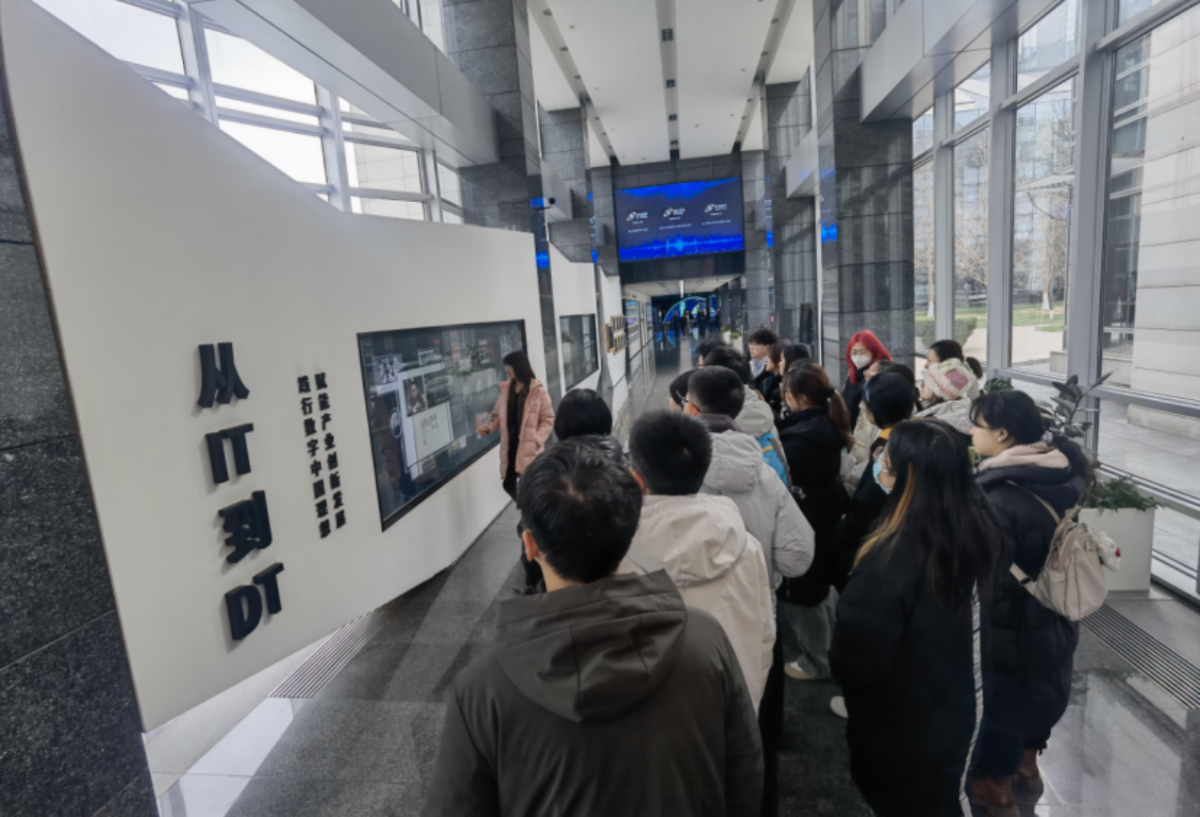 抵达实习基地后,神州数码校招负责人王建梅女士热情地迎接了同学们,带领大家参观了神州数码的公司历史与文化展厅。通过详实的史料、丰富的案例和先进的展示技术,让同学们深入了解了神州数码的发展历程。从创业初期的艰难探索,到逐步在行业中崭露头角,再到如今成为数字化领域的领军企业,其辉煌成就彰显了深厚的污污漫画和创新精神。