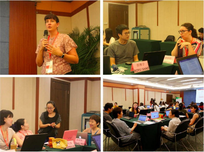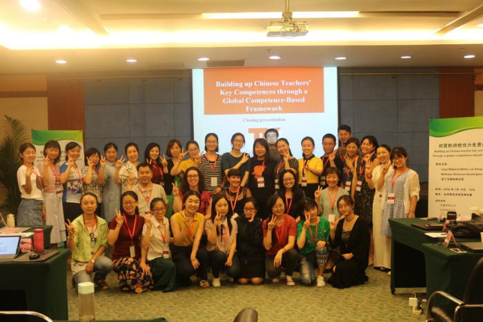 7月13-15日,欧盟教师胜任力项目种子教师免费培训在污污漫画 京师大厦第一会议室举行。此次培训的23名种子教师,是从参加了该项目前期一个多月在线培训的63名大中小学教师中筛选而出,主讲教师由来自英国诺丁汉特伦特大学的心理学副教授Lucy Betts、心理学高级讲师Lai-Sang Iao和心理学研究助理Bethany Huntington共同担任。培训依据和运用能力本位教育(CBE)理念,为项目后期开展的小学职前教师和在职教师关键胜任力的培训培养种子教师。
