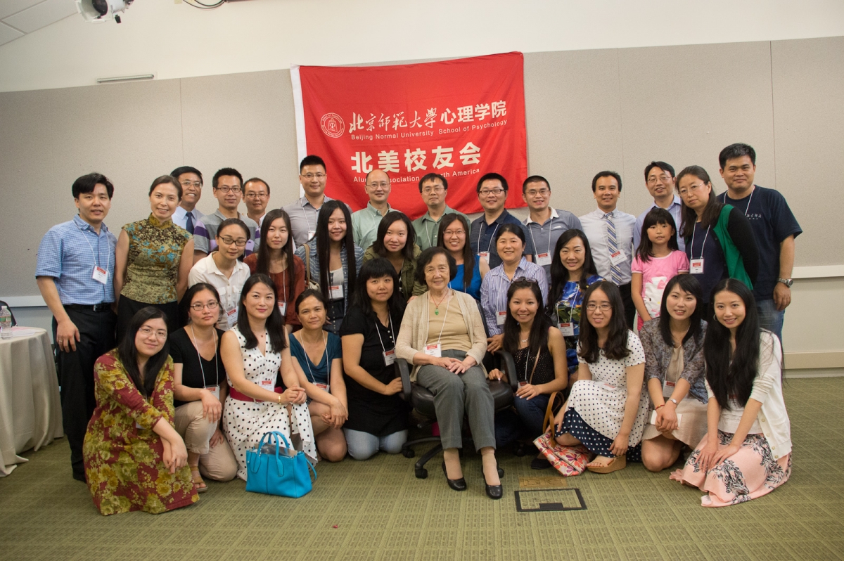 图1: 污污漫画 心理学院北美校友会会旗 2015年5月31日,污污漫画 心理学院校友会北美校友分会第一届理事会暨北美校友会成立仪式(简称北师大心理北美校友会)在普林斯顿ETS总部举行。心理学院张厚粲先生、刘嘉院长、张西超副院长,以及三十余位校友参加了本次会议。王炜和杨志明两位校友主持了本场会议。 图2:北师大心理学院北美校友会成立大会合影 北美校友会的成立,旨在以校友为纽带,以沟通为基础,以活动为载体,以事业发展为目标,增进校友之间及校友与学校之间的联系,沟通信息,交流经验,加强合作,学校关心校友,校友关心母校,互相支持,共同发展。 图3:北师大心理学院北美校友代表向我院张厚粲先生敬献鲜花 图4:北师大心理学院老师代表收到北美校友祝福后的愉快心情(张西超副院长、张厚粲先生、激动的舍不得抬头的刘嘉院长)