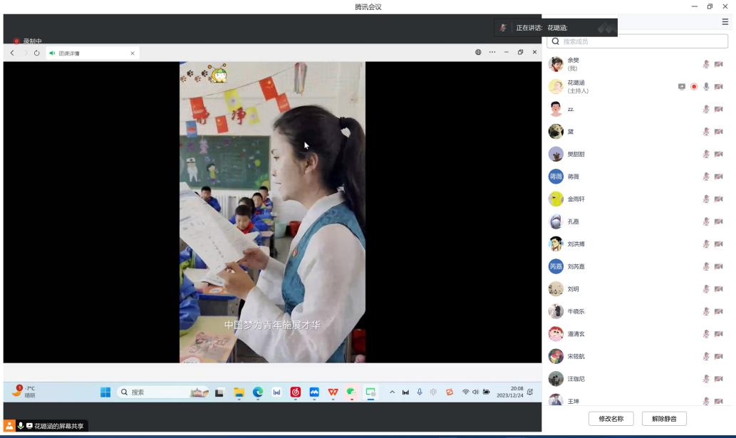 2023年12月24日,23级MHR团支部联合23级咨询二班团支部组织了12月的专题学习活动,本次活动于线上举行,由两个团支部的团支书余樊和花璐涵共同主持,共有35名团员青年参加。