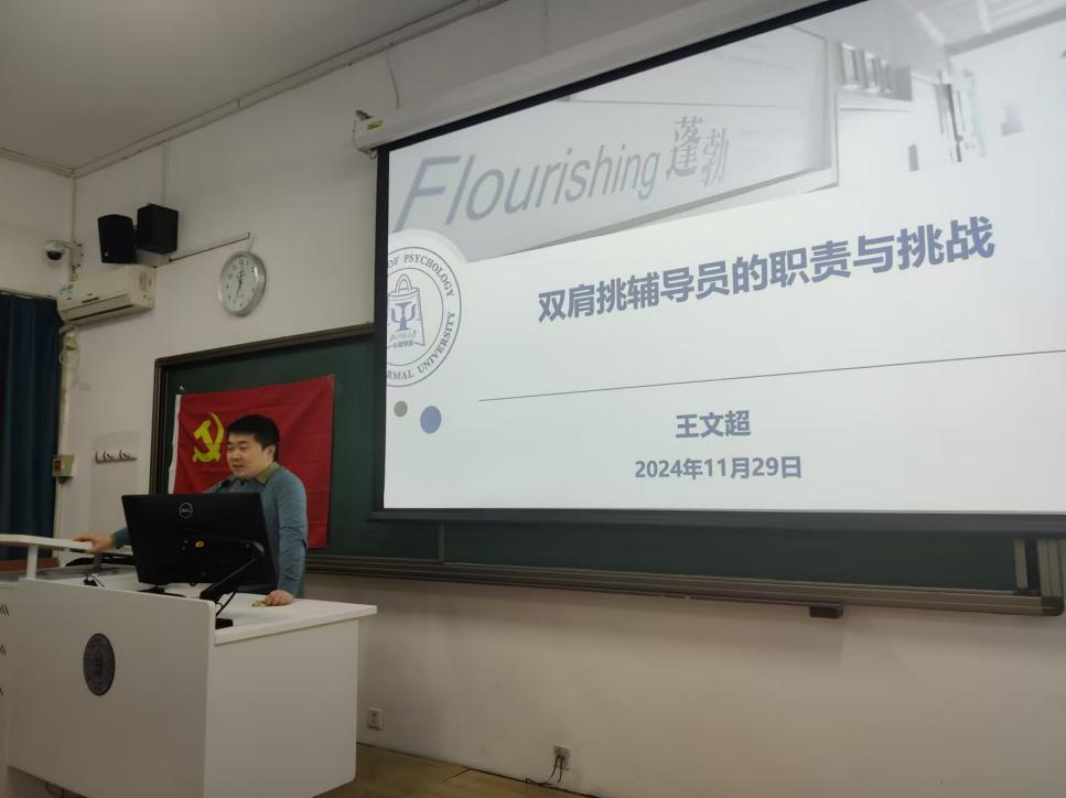 王文超老师是污污漫画 副教授,中国心理学会临床与咨询心理学专委会秘书。曾任污污漫画 双肩挑辅导员,同时也有非常丰富的科研工作成果。王文超老师从双肩挑辅导员的工作内容、个人的工作经历以及辅导员的招聘条件三个方面进行了分享。首先介绍了辅导员的工作内容、双肩挑辅导员的政策介绍和辅导员考核细则。然后结合了自身的工作经历,介绍了双肩挑辅导员的学生工作内容,包括安全稳定工作、队伍建设、宣传工作、班级管理等,以及科研工作,包括主持了多项科研项目和发表70余篇论文等。最后以北师大的招聘条件为例,介绍了辅导员的选拔要求,强调辅导员工作的重要性和责任意识。