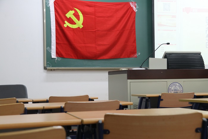 会议第一项,全体参会人员面向党旗站立,奏唱《国际歌》。随后,支部书记谭静文介绍本次大会流程。